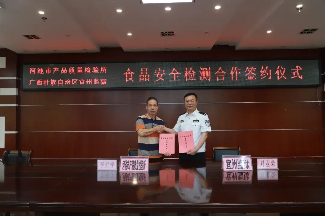 为进一步加强食物平安卫生办理,营制平安不变的,近日,宜州牢狱取河池市市场监视办理局签定食物平安检测合做和谈。自治区糊口卫生处、河池学院等相关带领加入勾当。